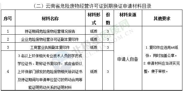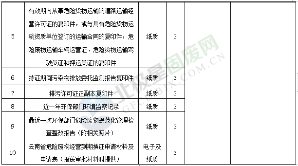 二、云南省危險廢物經營許可證到期換證申請材料清單