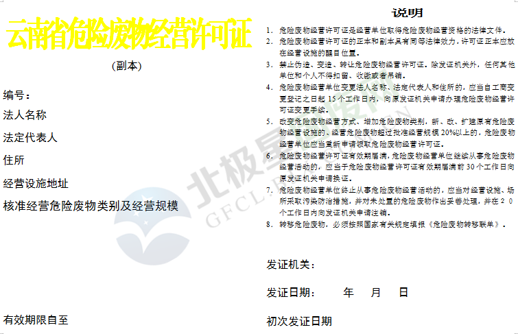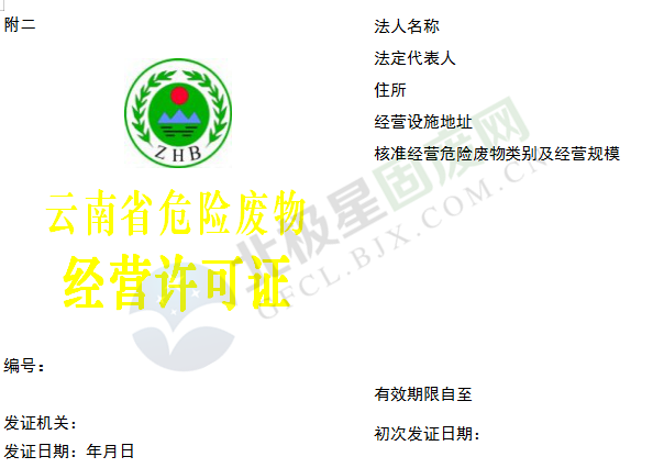 3.其他危險廢物綜合經營許可證,由云南省環(huán)境保護廳審批頒發(fā)。