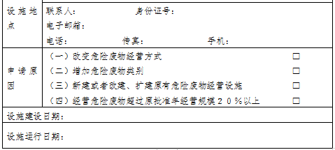 附:核準經營的危險廢物類別、經營規(guī)模和處置方式明細表、污染防治措施、環(huán)境監(jiān)測制度、新產生的危險廢物的管理計劃等。