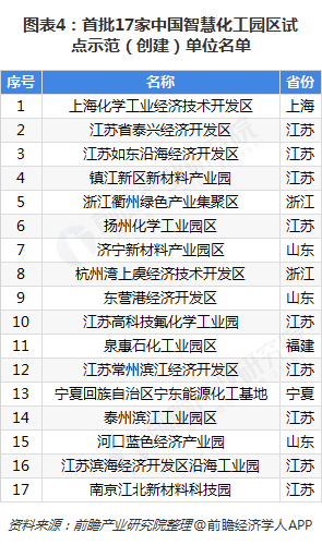 2018年11月30日,為落實國家相關(guān)產(chǎn)業(yè)政策,進一步推動我國化工園區(qū)智慧化建設(shè)進程,受工業(yè)和信息化部原材料工業(yè)司委托,中國石油和化學(xué)工業(yè)聯(lián)合公布“中國智慧化工園區(qū)試點示范(創(chuàng)建)單位”名單,評選出上?;瘜W(xué)工業(yè)經(jīng)濟技術(shù)開發(fā)區(qū)、江蘇省泰興經(jīng)濟開發(fā)區(qū)、江蘇如東沿海經(jīng)濟開發(fā)區(qū)等17家園區(qū)為首批示范單位。