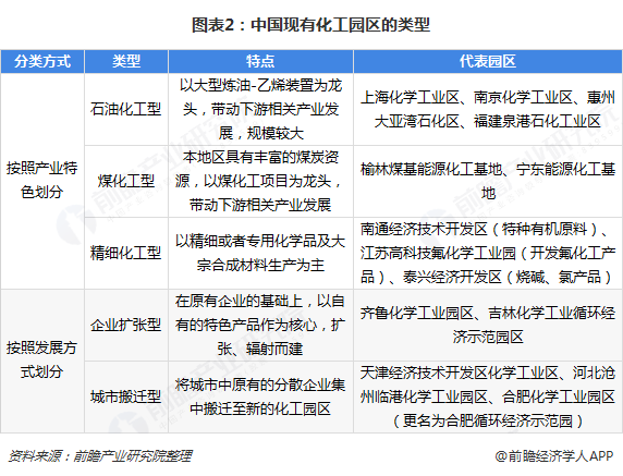 我國化工園區(qū)規(guī)模已經(jīng)形成并結(jié)合地方的世紀(jì)情況形成了各自的產(chǎn)業(yè)特色和發(fā)展類型。按產(chǎn)業(yè)特色,我國化工園區(qū)大致可分為石油化工型、煤化工型、精細化工型三種類型;按發(fā)展方式分,我國化工園區(qū)大致可以分為企業(yè)擴張型、城市搬遷型兩種類型;各化工園區(qū)類型的特點和代表園區(qū)具體如下: