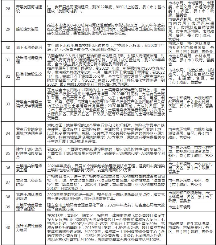 5.強化各類水體治理。進一步開展美麗河湖建設(shè),到2022年年底,80%以上的區(qū)、縣(市)基本建成“美麗河湖縣”。加快船舶水治理,推進本市籍100-400總噸內(nèi)河貨船生活污水防污染改造,2020年年底前經(jīng)改造仍不能達到要求的,限期予以淘汰;全面完成港口船舶污染物的接收設(shè)施建設(shè),保障船舶污染物可送岸接收處置。加強地下水污染防治,實行地下水取用總量控制和水位控制,嚴控地下水超采,到2020年年底,地下水質(zhì)量考核點位水質(zhì)級別保持穩(wěn)定。加強陸海統(tǒng)籌,深入推進近岸海域污染防治,鞏固全部6個入海排污口整治和標準化建設(shè)成果。加強入海河流治理,對主要入海河流和入海溪閘實行總氮、總磷排放總量控制,到2020年年底,全市1條主要入海河流總氮濃度達到目標要求。加強防洪排澇設(shè)施改造,推進平原骨干排澇工程建設(shè),到2022年年底,新增強排能力200立方米/秒,排澇能力總體達到20年一遇;推進江河干堤加固工程建設(shè),到2022年年底,完成江河干堤加固55公里,基本實現(xiàn)城市建成區(qū)和重點鎮(zhèn)所在防洪閉合圈全封閉;完成1000處水利工程標準化管理創(chuàng)建。