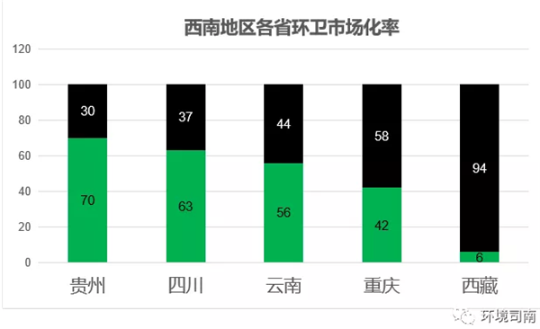 二、西南地區(qū)各省區(qū)環(huán)衛(wèi)市場(chǎng)化率