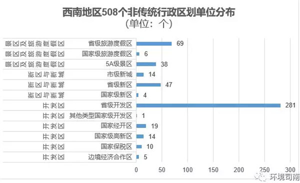 除了傳統(tǒng)的以區(qū)縣為基本單位的行政區(qū)劃單位外,西南五省市區(qū)還有508個(gè)各類(lèi)非傳統(tǒng)行政區(qū)劃單位,包括各類(lèi)國(guó)家級(jí)、省市級(jí)的經(jīng)開(kāi)區(qū)、開(kāi)發(fā)區(qū)、高新區(qū)、新區(qū)、新城、5A級(jí)景區(qū)及旅游度假區(qū)。