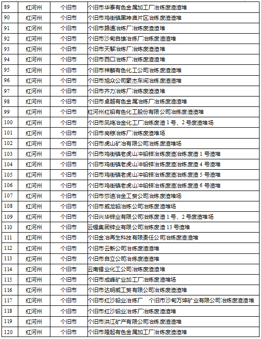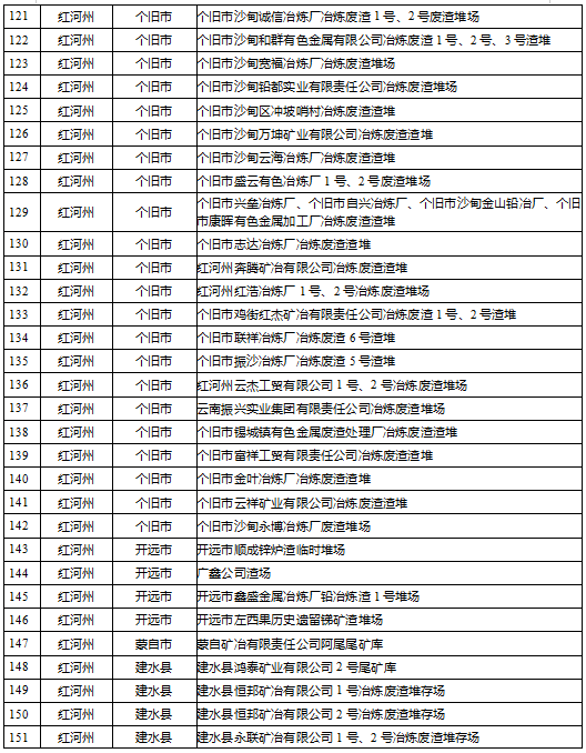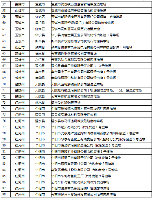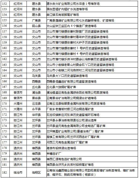 云南省工業(yè)固體廢物堆存場所環(huán)境整治清單(185個(gè))