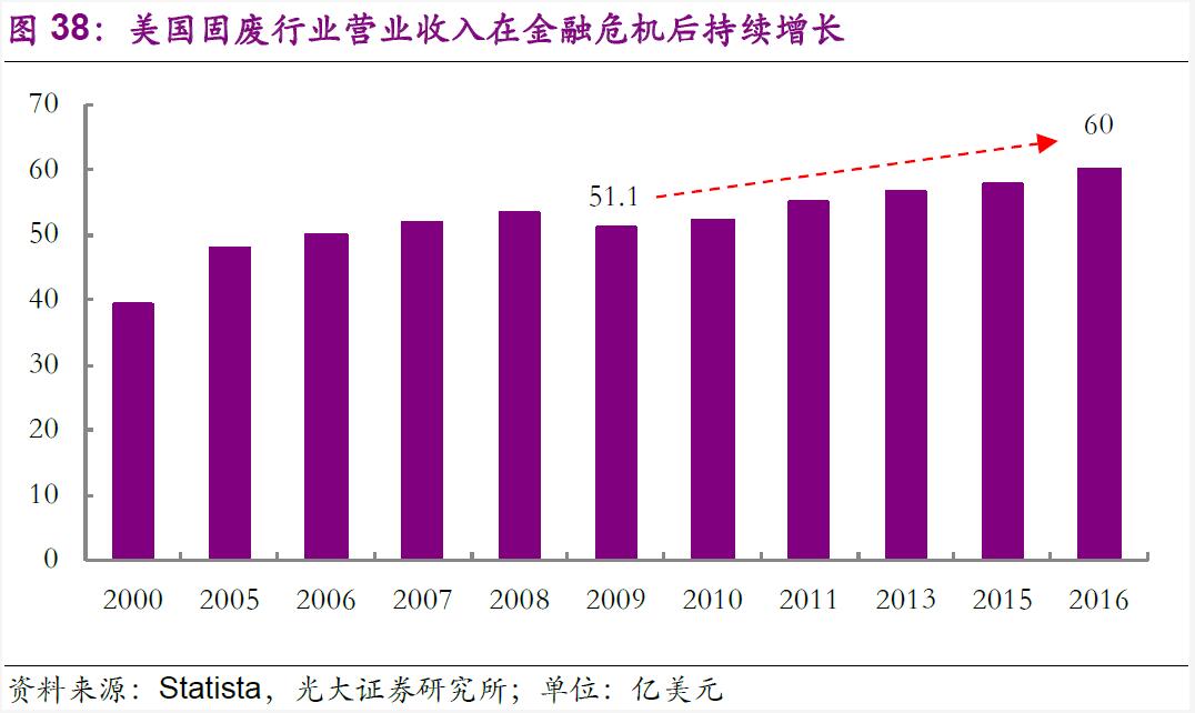《固體廢物處置法》催化行業(yè)快速成長。在水、大氣領(lǐng)域指導(dǎo)性文件陸續(xù)出臺之后,美國固廢領(lǐng)域的綱領(lǐng)性法律法規(guī)—《固體廢物處置法》最終于1965年正式頒布。作為固廢領(lǐng)域的指導(dǎo)性文件,該法案不僅為未來該領(lǐng)域法律法規(guī)的制定搭好了框架,更重要的是,它大幅提高了垃圾收集和處理行業(yè)的標(biāo)準(zhǔn),在擴大固廢行業(yè)市場份額的同時,也導(dǎo)致了成本的激增。小型公司只有通過不斷地合并,才能通過規(guī)模效應(yīng)來承擔(dān)標(biāo)準(zhǔn)提高帶來的高額投資和運營費用。