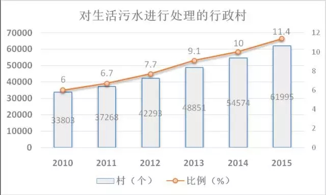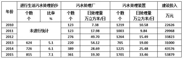 至2015年,全國仍有近90%的行政村未進行污水處理設施建設,市場空間極大!