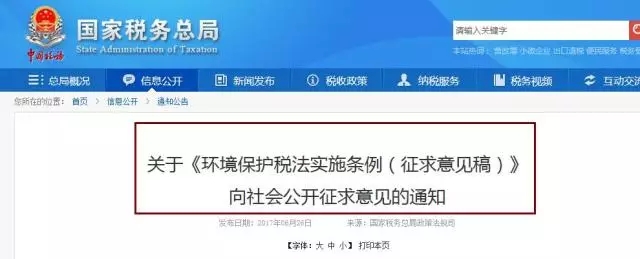 2016年12月25日十二屆全國人大常委會第二十五次會議通過了《中華人民共和國環(huán)境保護稅法》,自2018年1月1日起施行。為保證稅法順利實施,財政部、國家稅務總局、環(huán)境保護部近日發(fā)布了《中華人民共和國環(huán)境保護稅法實施條例(征求意見稿)》。