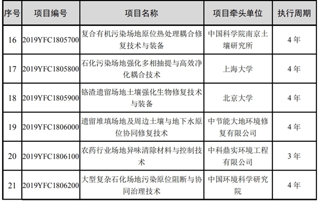 國家重點研發(fā)計劃“場地土壤污染成因與治理技術(shù)”重點專項2019年度指南擬立項項目公示清單