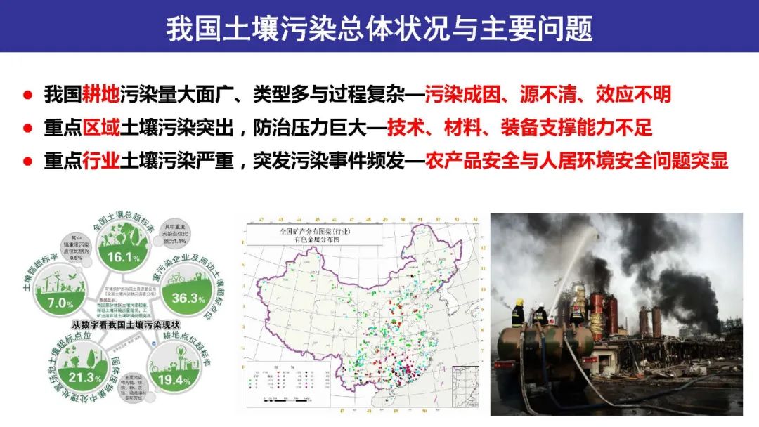 我國(guó)耕地污染量大面廣,類型多過(guò)程復(fù)雜。重點(diǎn)區(qū)域土壤污染突出,防治壓力巨大,重點(diǎn)行業(yè)土壤污染嚴(yán)重,突發(fā)事件頻發(fā)?;谝陨贤寥牢廴粳F(xiàn)狀,專家論述了我國(guó)土壤污染管控與修復(fù)研究發(fā)展與需求。