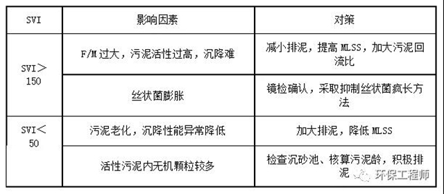 SVI主要反映污泥的松散程度,當(dāng)MLSS很高時(shí),僅用SV判斷污泥沉降性是不準(zhǔn)確的,必須結(jié)合SVI。對SVI的調(diào)控主要通過對MLSS的調(diào)整。