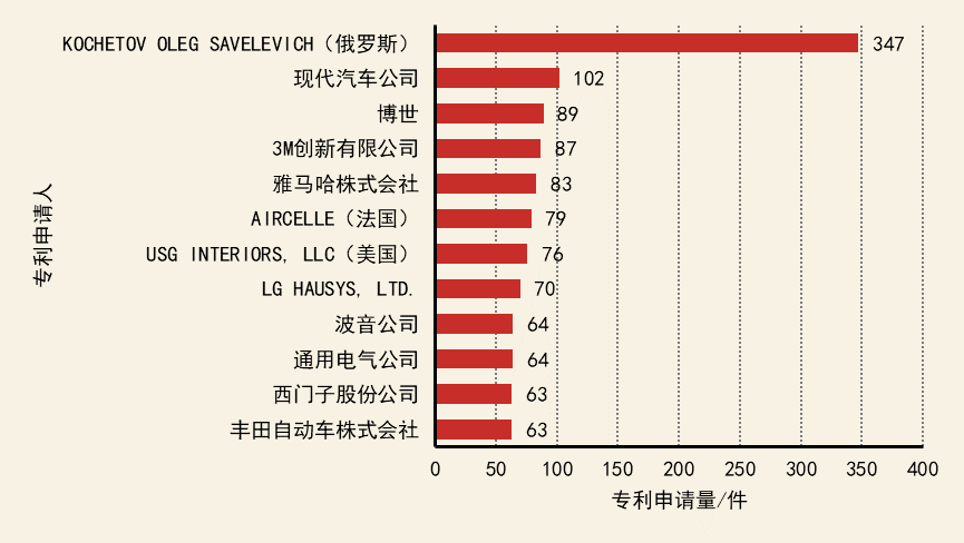 物理污染控制核心專(zhuān)利持有機(jī)構(gòu)分布