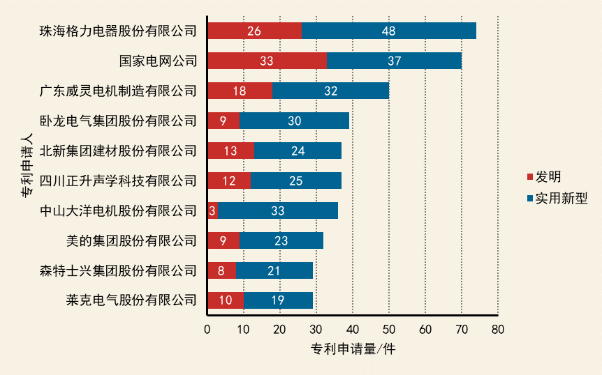 中國(guó)企業(yè)在該技術(shù)領(lǐng)域?qū)@暾?qǐng)以實(shí)用新型為主,大部分企業(yè)實(shí)用新型專(zhuān)利申請(qǐng)量占比60%以上,企業(yè)類(lèi)型集中于電氣企業(yè),以機(jī)械噪聲控制居多。