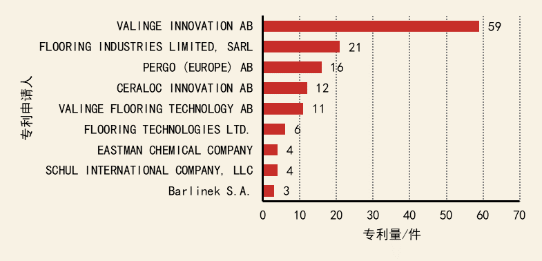 物理污染控制技術(shù)領(lǐng)域核心專(zhuān)利持有機(jī)構(gòu)有:VALINGE INNOVATION AB、FLOORING INDUSTRIES LIMITED, SARL、PERGO (EUROPE) AB、CERALOC INNOVATION AB、VALINGE FLOORING TECHNOLOGY AB。