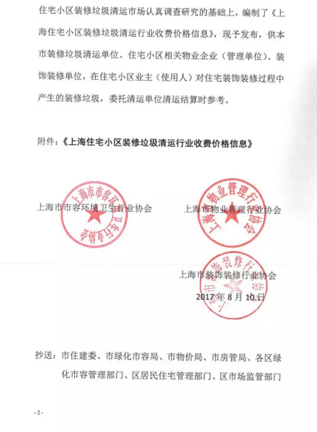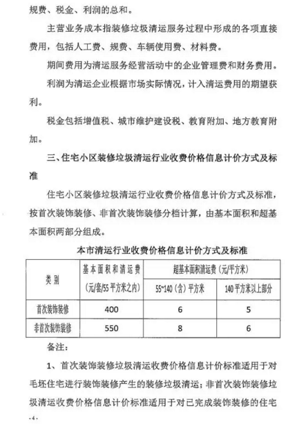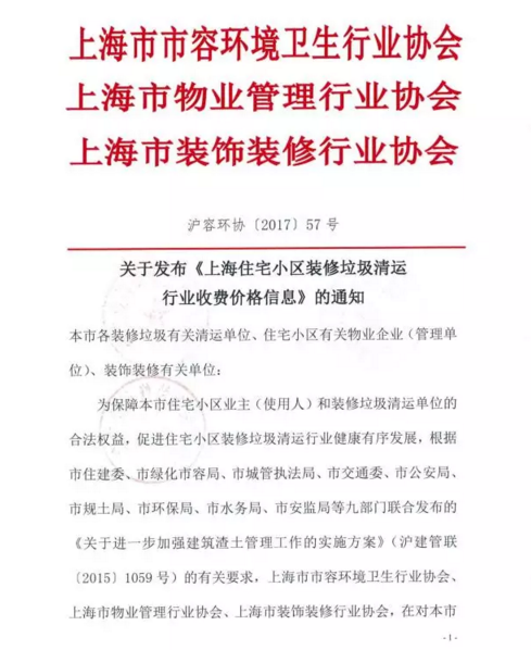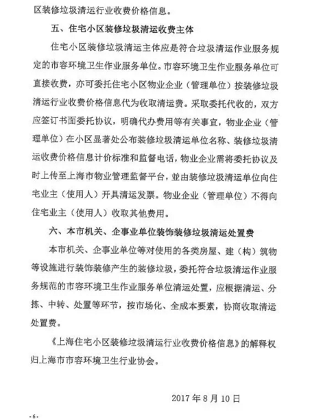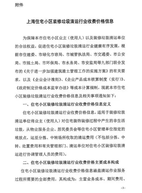 《上海市住宅小區(qū)裝修垃圾清運行業(yè)收費價格信息》全文內(nèi)容如下: