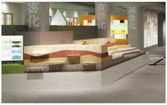 “衛(wèi)生填埋”沙盤,則是用仿地質材料,直觀展示垃圾填埋操作工藝,包括滲瀝液如何收集與處理、填埋氣體如何利用等,模型背面設置可開啟的抽屜,展示可降解垃圾填埋若干年后的標本。