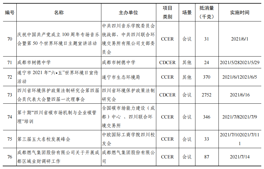 《研究報(bào)告》顯示,截至2021年7月底,全省累計(jì)實(shí)施社會(huì)活動(dòng)碳中和98場(chǎng)(次),參與人數(shù)超過8621人次,抵消溫室氣體排放4828.9噸二氧化碳當(dāng)量,相當(dāng)于100萬人停駛一天小汽車產(chǎn)生的二氧化碳排放。其中,依托四川聯(lián)合環(huán)境交易所“點(diǎn)點(diǎn)”碳中和公益服務(wù)平臺(tái)線上實(shí)施96場(chǎng)次,成為碳中和的主流方式。碳中和場(chǎng)景也十分多樣,不斷涌現(xiàn)會(huì)議、展覽、大數(shù)據(jù)中心、園區(qū)、景區(qū)、音樂會(huì)、婚禮等碳中和場(chǎng)景,雅安大數(shù)據(jù)產(chǎn)業(yè)園建成全國首個(gè)碳中和國家綠色數(shù)據(jù)中心,青城山—都江堰風(fēng)景名勝區(qū)成為國內(nèi)首個(gè)碳中和景區(qū)。抵消的產(chǎn)品除了國家核證自愿減排量,還有“碳惠天府”核證減排量和林業(yè)碳匯等本地化產(chǎn)品。