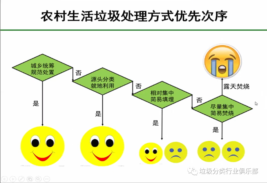 如何讓農(nóng)村垃圾分類在短時(shí)間得到改善?劉教授按優(yōu)先次序介紹了農(nóng)村生活垃圾處理方式:優(yōu)先考慮城鄉(xiāng)統(tǒng)籌、規(guī)范處置;如果有的地方達(dá)不到條件可以選擇源頭分類、就地利用,形成一個(gè)利用體系。若實(shí)在不行就選擇相對集中簡易填埋,但簡易焚燒特別是露天焚燒是不提倡的,它對環(huán)境的危害性太大。