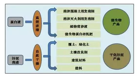 污泥經(jīng)水解處理后,其含蛋白液體經(jīng)濃縮后可作為蛋白發(fā)泡劑和有機(jī)肥等利用,污泥殘?jiān)捎米龈餐?、綠化土、土壤改良劑和建筑材料等。