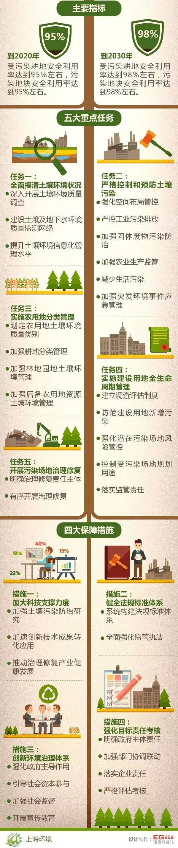 《實施方案》圍繞一個總體目標(biāo),緊扣五大重點任務(wù),落實四大保障措施,共提出10條、33款措施內(nèi)容和具體任務(wù),對上海土壤污染防治工作做出了全面戰(zhàn)略部署,這是當(dāng)前和今后一段時期上海土壤污染防治工作的行動綱領(lǐng)。