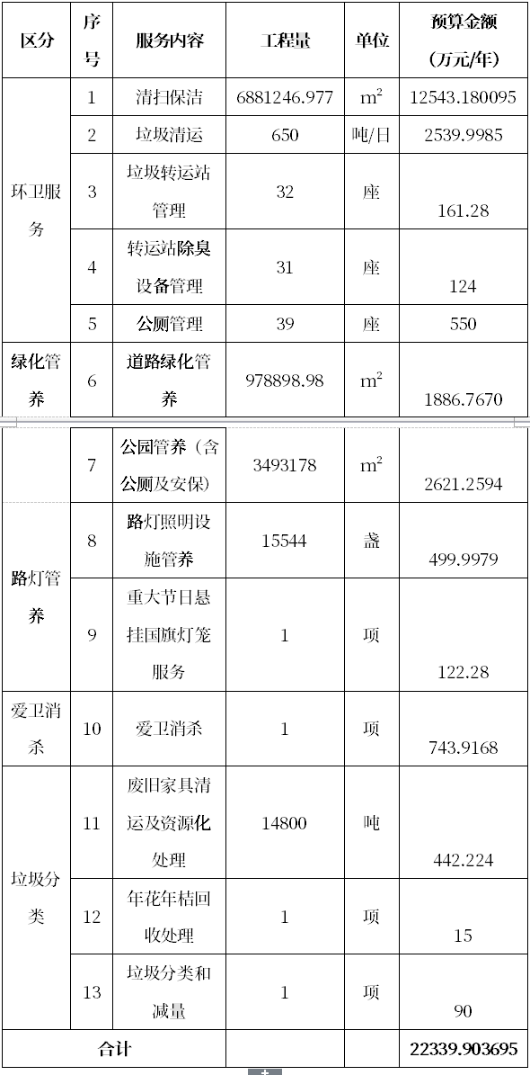 服務(wù)范圍:覆蓋平湖街道整個(gè)轄區(qū),服務(wù)范圍主要包括平湖街道轄區(qū)內(nèi)的市政清掃保潔、垃圾清運(yùn)、垃圾轉(zhuǎn)運(yùn)站管理、轉(zhuǎn)運(yùn)站除臭管理、公廁管理、綠化管養(yǎng)、公園管養(yǎng)、路燈照明設(shè)施管養(yǎng)、重大節(jié)日懸掛國旗燈籠服務(wù)、愛衛(wèi)消殺、廢舊家具收集清運(yùn)及資源化處理、年花年桔回收處理、垃圾分類和減量等。
