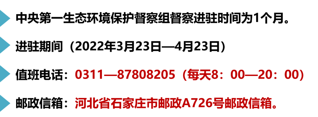 河北是我國工業(yè)大省、鋼鐵大省,肩負重要大氣防治、產(chǎn)能減壓任務(wù),能力越大責任越大,在督查中率先鋪開各地動員會,石家莊、承德、保定、滄州、衡水、廊坊等地紛紛響應(yīng),為確保督查工作穩(wěn)步推進,23號開始,中央環(huán)保督察組已經(jīng)正式入駐河北,并公布了舉報地址及電話。