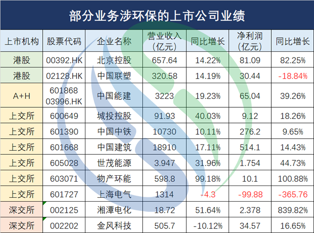 另附11家業(yè)務涉環(huán)保的上市公司業(yè)績