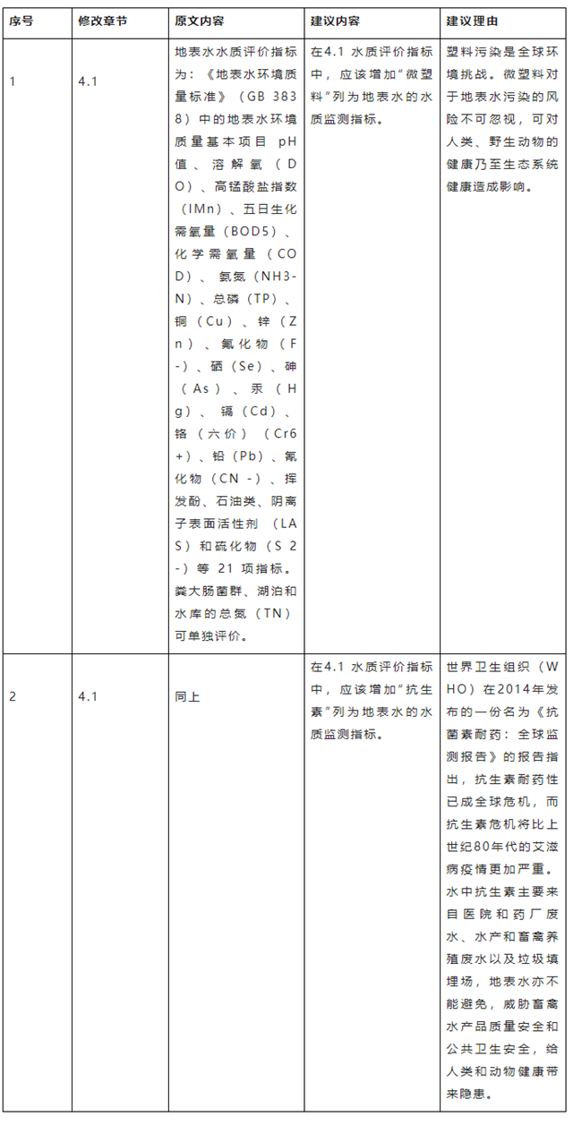 以下是針對《地表水環(huán)境質量評價技術規(guī)范》(征求意見稿)》修改建議的詳細內(nèi)容: