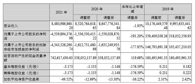 同日啟迪環(huán)境披露2021年年度報告,報告期內,公司實現(xiàn)營業(yè)收入84.81億元,同比下降1.93%,歸屬于上市公司股東凈虧損45.4億元,歸屬于上市公司股東的扣除非經常性損益凈虧損45.44億元,基本每股收益-3.173元。
