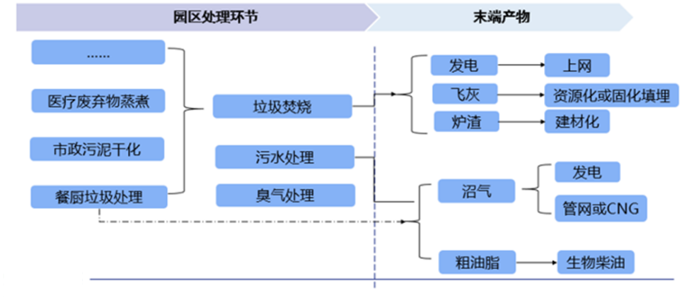 不同處理工藝環(huán)節(jié)及末端產物資源化利用