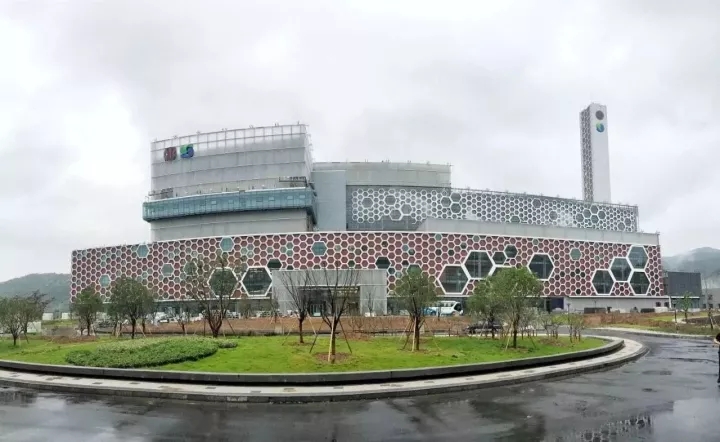 專(zhuān)家團(tuán)隊(duì)考察的第一站,是位于寧波海曙區(qū)洞橋鎮(zhèn)宣裴村裴岙的寧波市固廢處理中心,共占地289畝,西靠武嶺,東瀕剡溪,北依雪竇山,水繞山環(huán),景色秀麗。其中寧波明州生活垃圾焚燒發(fā)電廠是康恒環(huán)境在寧波全力打造的精品項(xiàng)目,處理規(guī)模為2250噸/日(3 x 750噸/日機(jī)械爐排爐),年處理生活垃圾可達(dá)82萬(wàn)噸,發(fā)電量約2.6億度,占地面積82729平方米。項(xiàng)目外觀和立面由法國(guó)AIA公司設(shè)計(jì),采用“去工業(yè)化”的設(shè)計(jì)手法,引入蜂巢設(shè)計(jì)的理念,將文化與藝術(shù)的元素融入項(xiàng)目的建設(shè)之中,精心打造的既有工業(yè)美感,又兼具藝術(shù)氣質(zhì)的新地標(biāo),被業(yè)內(nèi)人士稱(chēng)為“最美的垃圾發(fā)電廠”。