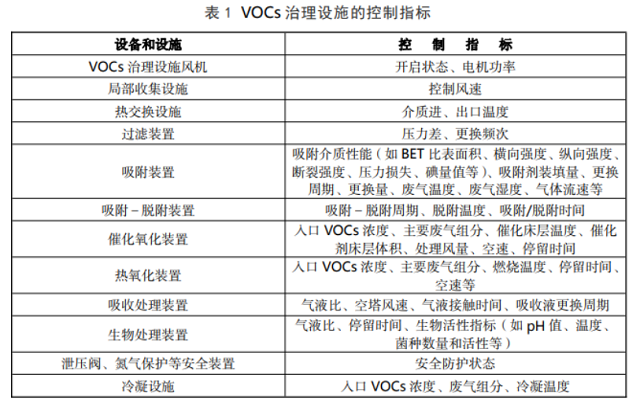 5.2.1 排污單位應(yīng)根據(jù)生態(tài)環(huán)境保護(hù)要求以及相關(guān)的技術(shù)文件資料,在操作規(guī)程中設(shè)定VOCs 治理設(shè)施正常運(yùn)行的控制指標(biāo),包括但不限于表 1 所列內(nèi)容