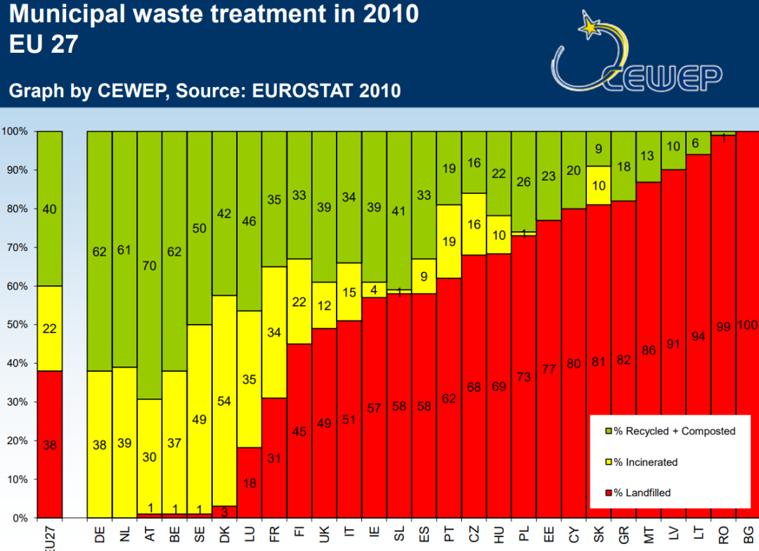 歐洲23國(guó)的垃圾焚燒占整個(gè)垃圾處理量的比例,已從2010年的22%,增長(zhǎng)至2019年的27%。