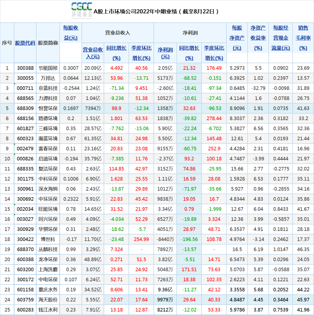 出現(xiàn)這一情況,直接原因是受疫情影響,但長期來看還是由于垃圾焚燒市場的日漸收窄,城鎮(zhèn)污水處理率也接近飽和,傳統(tǒng)增量市場放緩已是大勢所趨。在此背景下,光大環(huán)境也在積極尋求轉(zhuǎn)型,一是由投資驅(qū)動轉(zhuǎn)為運(yùn)營拉動,二是積極拓展餐廚廚余、垃圾分類等協(xié)同業(yè)務(wù),三是積極開拓海外市場,四是全面提升企業(yè)管理。作為環(huán)保產(chǎn)業(yè)體量最大的公司,光大環(huán)境對于市場冷暖的敏感度無疑也最高。環(huán)保市場的一個細(xì)微變化,反映到它的身上可能就是一個大的陣痛。而光大環(huán)境為了應(yīng)對市場變化做出的變革,對于其他環(huán)保公司也有極強(qiáng)的借鑒意義。營收同比下降19%,凈利潤同比下降近28%,這樣“雙降”的場面,已經(jīng)好幾年沒有出現(xiàn)在光大環(huán)境身上了。對比去年,2021年上半年光大環(huán)境的成績是營業(yè)收入同比增長44%,除利息、稅項(xiàng)、折舊及攤銷前盈利增長29%,權(quán)益持有人應(yīng)占盈利增長28%,每股基本盈利也增長了28%。從去年的+44%,到今年的-19%,一年之間,光大環(huán)境的營收增速下降了63個百分點(diǎn)。去年,由于業(yè)績出色,光大環(huán)境還首次躋身《財富》中國500強(qiáng),位列第283位,成為榜單中排名最高的環(huán)境企業(yè)。而今年,光大環(huán)境雖然依然入選了這份榜單,但排名已經(jīng)從第283位下降到301位,下滑了18位。再看去年全年的業(yè)績,光大環(huán)境2021年年報顯示,公司全年實(shí)現(xiàn)營業(yè)收入498.95億港元,同比增長16.23%,歸屬母公司凈利潤68.04億港元,同比增長13.10%,基本每股收益為1.11港元?! ?/span>雖然增速比半年報的時候有所收窄,但也能保持十幾個百分點(diǎn)的增長。還有前年的半年報,2020年8月13日,當(dāng)時還叫“光大國際”的公司發(fā)布2020年上半年業(yè)績,雖然受到新冠肺炎疫情、貿(mào)易沖突等因素的沖擊,但公司還是實(shí)現(xiàn)營收增長13%,凈利潤增長15%的好成績。回顧過去兩年的半年報,光大環(huán)境都能保持百分之十幾、甚至百分之四十幾的營收增速,而今年則第一次出現(xiàn)了負(fù)增速。是不是市場的整體大環(huán)境都不好?也不一定。橫向?qū)Ρ绕渌h(huán)保公司,據(jù)全國工商聯(lián)環(huán)境商會統(tǒng)計(jì),今年上半年還是有近七成的企業(yè)實(shí)現(xiàn)了營收增長,中環(huán)環(huán)保、節(jié)能國禎、恒譽(yù)環(huán)保、旺能環(huán)境、海天股份等都實(shí)現(xiàn)了業(yè)績和凈利“雙升”。▼標(biāo)紅色的是數(shù)據(jù)增長的環(huán)保企業(yè)。圖片來源:全聯(lián)環(huán)境商會可見,雖然環(huán)保市場整體不太景氣,但也有許多環(huán)保企業(yè)通過自身努力,實(shí)現(xiàn)了業(yè)績和凈利潤的逆勢增長。光大環(huán)境半年報業(yè)績?yōu)楹问状蜗禄?strong style="margin: 0px;padding: 0px;outline: 0px;box-sizing: border-box !important;overflow-wrap: break-word !important;">短期原因肯定與疫情有關(guān)。以它的附屬公司——光大綠色環(huán)保為例,上半年歸母凈利潤也同比減少了不低于40%。究其原因,主要就是受國內(nèi)疫情影響,相關(guān)地區(qū)管控措施使得生物質(zhì)綜合利用板塊原材料成本大幅上漲、危廢及固廢板塊需求疲弱及處理單價持續(xù)下降所致。而這也是很多其他環(huán)保公司上半年業(yè)績下滑的共同原因。正和生態(tài)就表示,2022年初公司主要市場區(qū)域深圳、上海、河北和北京先后受疫情防控的影響,地方政府主導(dǎo)的項(xiàng)目招投標(biāo)活動明顯受阻,項(xiàng)目掛網(wǎng)、投標(biāo)、審批手續(xù)等耗時延長。同時,由于差旅受限,對公司重點(diǎn)區(qū)域的市場推廣活動有顯著的影響。不過,光大環(huán)境也沒有把業(yè)績的下滑單純歸結(jié)到疫情身上,而是看到了更長期的變量。據(jù)公司管理層介紹,建造收益下降不完全是疫情因素導(dǎo)致。目前,全國垃圾焚燒發(fā)電產(chǎn)能已出現(xiàn)局部過剩,國內(nèi)城鎮(zhèn)污水處理率也已接近飽和,市場進(jìn)入存量博弈階段,持續(xù)高速增長必將難以為繼。傳統(tǒng)市場的萎縮,在光大環(huán)境的核心業(yè)務(wù)——垃圾焚燒領(lǐng)域體現(xiàn)得最為明顯。據(jù)《環(huán)保圈》統(tǒng)計(jì),2022年上半年,全國共開標(biāo)26個垃圾焚燒項(xiàng)目(新建),處理規(guī)模合計(jì)達(dá)到2.01萬噸/日,投資額合計(jì)127.29億元。而在2019年上半年的時候,全國新增項(xiàng)目還是47個,處理規(guī)模合計(jì)5.59萬噸/日。4年之間,新增項(xiàng)目個數(shù)和處理規(guī)模同比分別下降了45%和64%。▼數(shù)據(jù)來源:中國政府采購網(wǎng)及各地方政府采購網(wǎng)、環(huán)保圈、環(huán)衛(wèi)科技網(wǎng)新訂單釋放速度放緩,再加上國補(bǔ)退坡等的影響,使得垃圾焚燒企業(yè)不得不開展“花式自救”。以協(xié)同處置為例,據(jù)《環(huán)保圈》不完全統(tǒng)計(jì),2022年上半年發(fā)布的有關(guān)垃圾焚燒項(xiàng)目協(xié)同處置/技改摻燒其他垃圾的事件多達(dá)24起,其中涉及餐廚垃圾協(xié)同處置項(xiàng)目共計(jì)10個,涉及污泥協(xié)同處置的共計(jì)15個,涉及一般工業(yè)固廢摻燒的共計(jì)11個。市場端的變化,在光大環(huán)境這種大體量的企業(yè)身