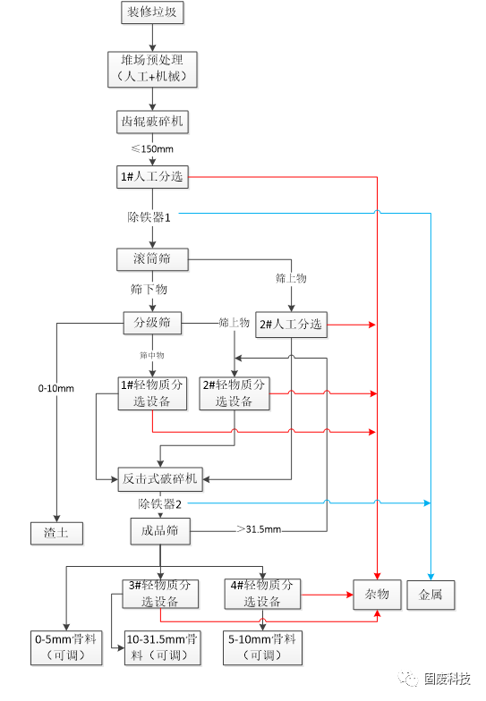▲圖一 裝修垃圾“先破后篩”預(yù)處理工藝參考圖