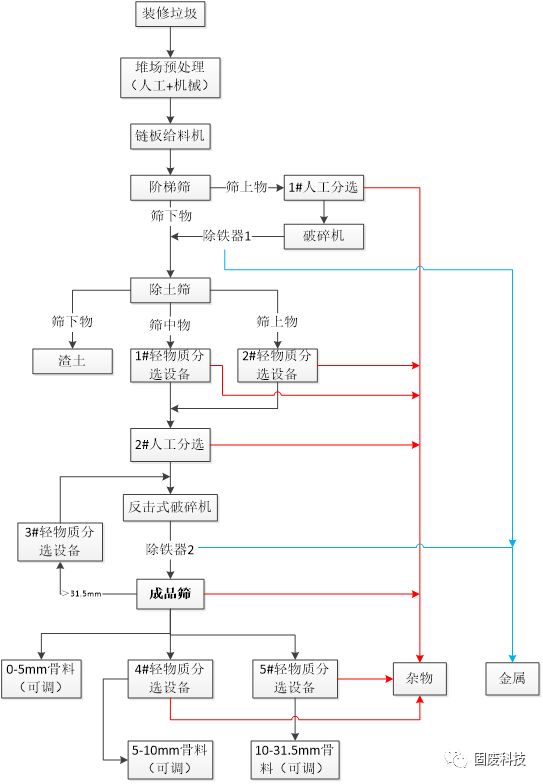 ▲圖二 裝修垃圾“先篩后破”預(yù)處理工藝參考圖