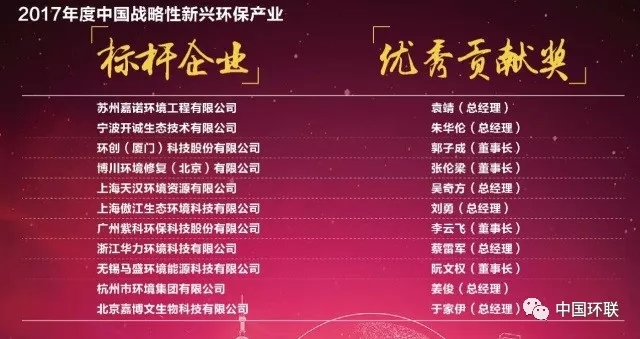 2017年度中國戰(zhàn)略性新興環(huán)保產(chǎn)業(yè)領(lǐng)軍企業(yè)與杰出貢獻(xiàn)獎