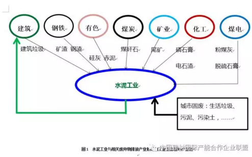 水泥工業(yè)綜合利用工業(yè)固體廢物的歷史悠久。有多少工業(yè)產(chǎn)業(yè)的固廢要依賴水泥工業(yè)和水泥制品產(chǎn)業(yè)安全處置和資源化綜合利用呢?實在太多,筆者無法作全面統(tǒng)計,尤其是各種工業(yè)過程產(chǎn)生的危險廢棄物,但是圖1中所列出的相關(guān)產(chǎn)業(yè)已足夠令人有一個大觀。據(jù)2010年的數(shù)據(jù),水泥工業(yè)固廢利用已占全國固廢利用量的30%左右。一些業(yè)內(nèi)外人士認(rèn)為水泥工業(yè)利廢是理所當(dāng)然,其實不然。水泥生產(chǎn)利用可燃廢物,最初是因為國家能源短缺時降低水泥產(chǎn)品生產(chǎn)能耗的需要。水泥熟料生產(chǎn)有著嚴(yán)格的生料化學(xué)組分設(shè)計、成分波動范圍和熟料產(chǎn)品質(zhì)量控制要求,從系統(tǒng)穩(wěn)定生產(chǎn)和質(zhì)量控制上來說,組分變化或波動較大、所含微量元素不同和濃度高低、廢物性能差異較大的各種工業(yè)固廢的利用,均會對水泥生產(chǎn)過程和產(chǎn)品質(zhì)量帶來影響,需要通過研發(fā),采取相應(yīng)的技術(shù)措施加以協(xié)同和消除影響??梢哉f,每一種廢棄物的利用都必須研發(fā)相應(yīng)的控制技術(shù),水泥工業(yè)的環(huán)保功能是建立在科技創(chuàng)新的基礎(chǔ)之上。