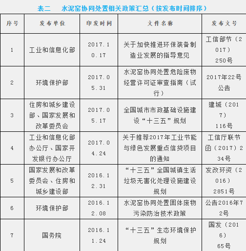從2010年至2017年,與水泥窯協(xié)同處置相關(guān)的國務(wù)院和部委發(fā)布的政策已達(dá)26項之多(表二)。這些直接和間接支持水泥窯協(xié)同處置的政策創(chuàng)新和政府主管部門的直接推動,加快了水泥窯協(xié)同處置的創(chuàng)新發(fā)展。但遺憾的是,水泥窯協(xié)同處置企業(yè)迄今仍然不能享受國家對生活垃圾處置的財政補(bǔ)貼。其實,在市場機(jī)制下,他們真正需要的是公平競爭環(huán)境。筆者相信,長風(fēng)破浪會有時,不用多久,水泥窯協(xié)同處置生活垃圾一定會成為政府不可或缺的好幫手。