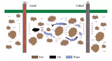 3.電動修復(fù)法:是一種原位土壤修復(fù)技術(shù)。通過向污染土壤中置人電極,并通以低壓直流電形成電場。在電勢梯度作用下產(chǎn)生的電動效應(yīng)(電滲析、電遷移和電泳)會驅(qū)動土壤中的流體介質(zhì)發(fā)生定向移動,從而使污染物伴隨主體流動從土壤中移除