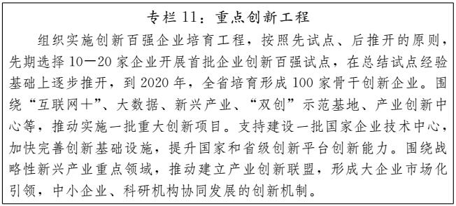3.競爭優(yōu)勢大幅增強(qiáng)。到2020年,培育形成100家以上創(chuàng)新型骨干企業(yè),壯大一批機(jī)制靈活、創(chuàng)新突出的中小微企業(yè),打造一批技術(shù)含量高、核心競爭力強(qiáng)、特色優(yōu)勢明顯的產(chǎn)業(yè)鏈和產(chǎn)業(yè)集群,參與國內(nèi)外分工的層次不斷提高,部分重要領(lǐng)域由跟跑、并跑向領(lǐng)跑轉(zhuǎn)變。