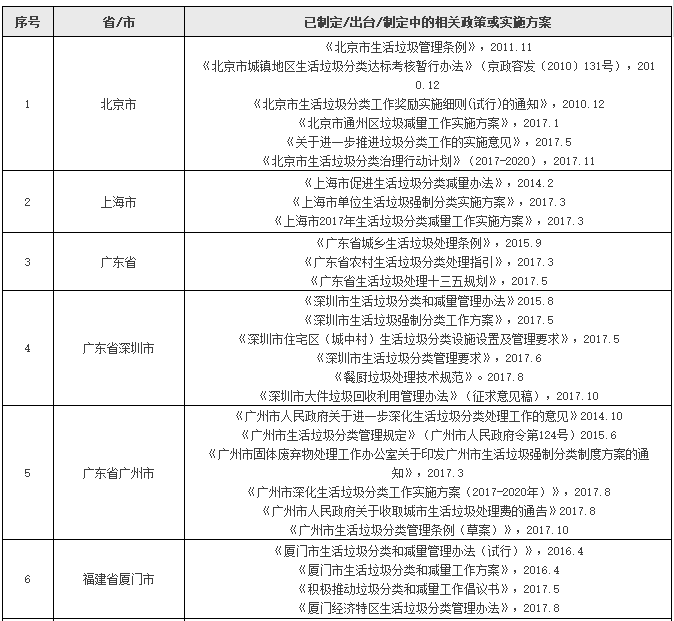 隨著更多省市地區(qū)開始推行垃圾分類,以政府購買服務(wù)形式進(jìn)行垃圾分類服務(wù)項目的地區(qū)將越來越多,2018年、北京、上海、浙江等地的垃圾分類服務(wù)業(yè)務(wù)必將擴(kuò)大。