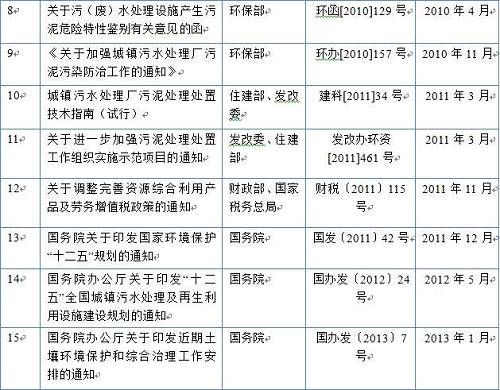 污泥處理處置相關(guān)政策出臺情況