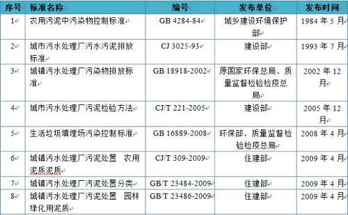 從國家層面的標準來看,現(xiàn)共發(fā)布過污泥相關(guān)標準16項,其中包括污泥泥質(zhì)相關(guān)標準有8項,排放標準4項,分類標準1項,檢驗方法1項,技術(shù)規(guī)程1項,還有1項設(shè)計規(guī)范。整體來看,大部分污泥相關(guān)標準均為推薦性標準和行業(yè)標準,國家強制標準有5項,其中《農(nóng)用污泥中污染物控制標準》(GB4284-84)和《城鎮(zhèn)污水處理廠污染物排放標準》(GB 18918-2002)發(fā)布時間要追溯到1984年和2002年,在《生活垃圾填埋場污染控制標準》(GB16889-2008)中關(guān)于污泥的規(guī)定只有一條,而水泥窯協(xié)同處置污泥的設(shè)計標準,對整個行業(yè)參考性較小。目前最新執(zhí)行的強制性標準為《城鎮(zhèn)污水處理廠污泥泥質(zhì)》(GB24188-2009),標準內(nèi)容也僅僅只有對4.2.1條款的城鎮(zhèn)污水處理廠污泥泥質(zhì)基本控制指標及限值作出強制性要求,其他條款如監(jiān)測分析方法等均為推薦性。