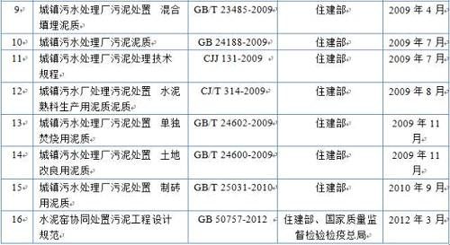 我國從國家法律法規(guī)宏觀政策層面出臺的污泥處理處置相關(guān)政策和標準詳見下表1和表2。