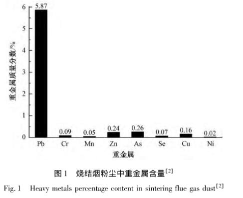 燒結機頭煙氣中的多種重金屬,如Pb、Zn、As、Cu、Cr等,主要富集煙粉塵中(圖1)。在凈化過程中,一部分被除塵器捕集,作為返灰配入原料中重新燒結,使得燒結礦中重屬含量增高;一部分經(jīng)由脫硫設備富集在脫硫副產(chǎn)物中,影響其安全利用;剩余部分會隨著煙道排,對周邊環(huán)境造成重污染。較高比電阻的重金屬氧化物,會在電極上形成絕緣層,降低電除塵器的除塵效率,影響正常排灰。