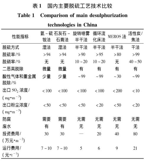活性炭/焦法本身具有多污染物脫除效果,符合多污染物聯(lián)合防治的發(fā)展方向,副產(chǎn)品可有效利用,但不適合處理SO2濃度高或波動大的煙氣,且投資和運行費用較高。