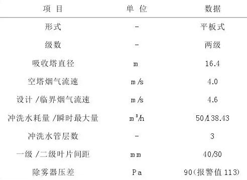 某發(fā)電公司660MW超臨界燃煤空冷機(jī)組,鍋爐型號:DG2100/25.4-II2,配套建設(shè)有石灰石-石膏濕法脫硫裝置。每座吸收塔頂部安裝兩級水平布置的除霧器,參數(shù)見表1。