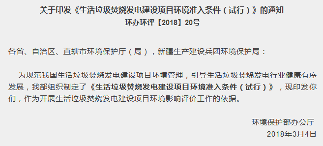 生活垃圾焚燒發(fā)電建設(shè)項目環(huán)境準(zhǔn)入條件