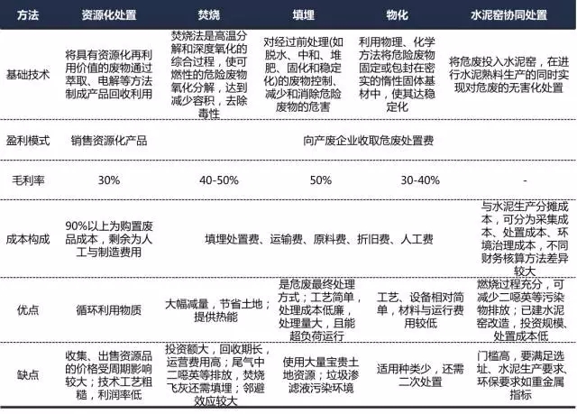危廢處理方法主要有資源化、無(wú)害化兩類(lèi)